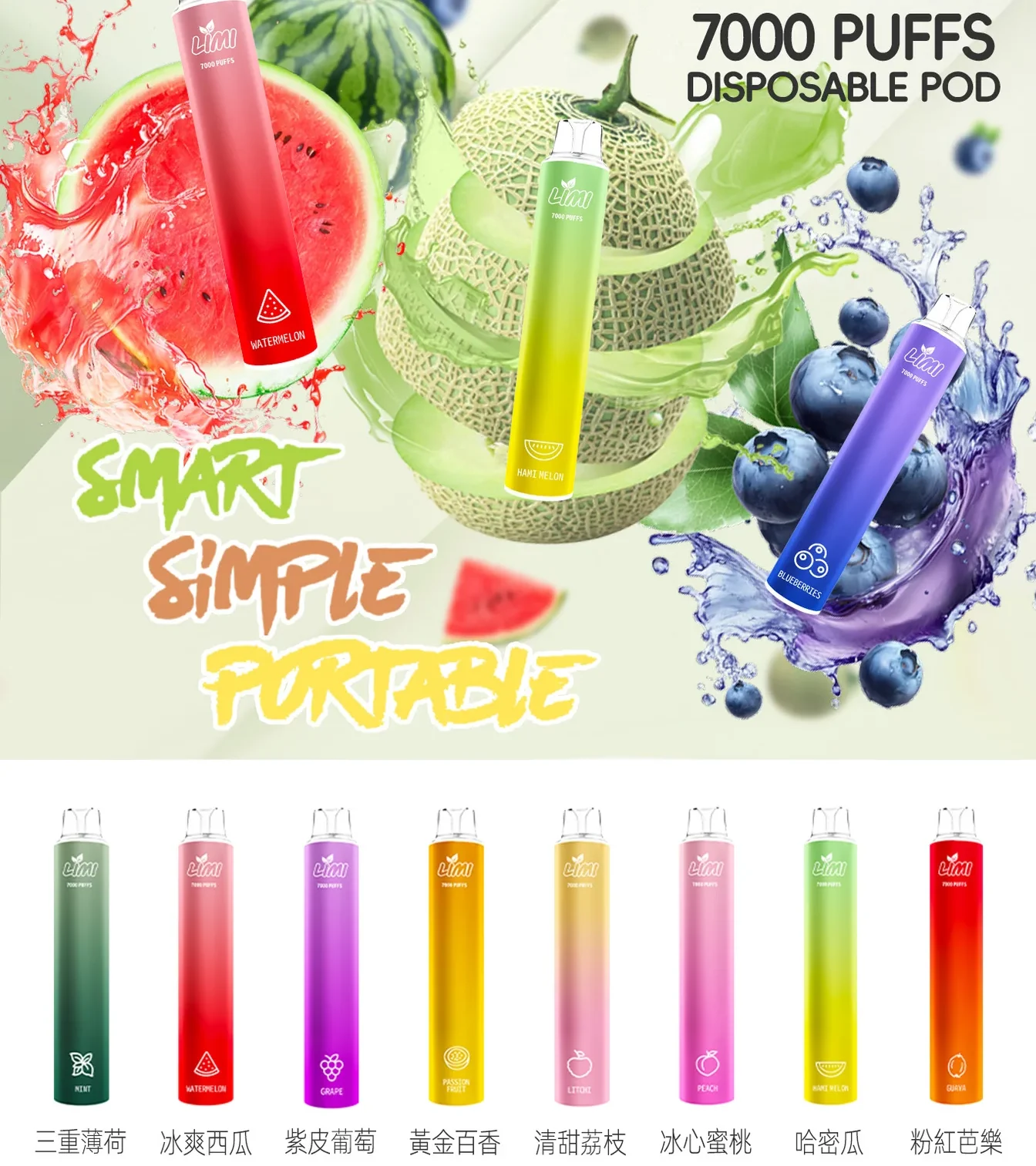 NT$440LIMI 7000口 抛棄式/一次性霧化棒 可充電電子煙
