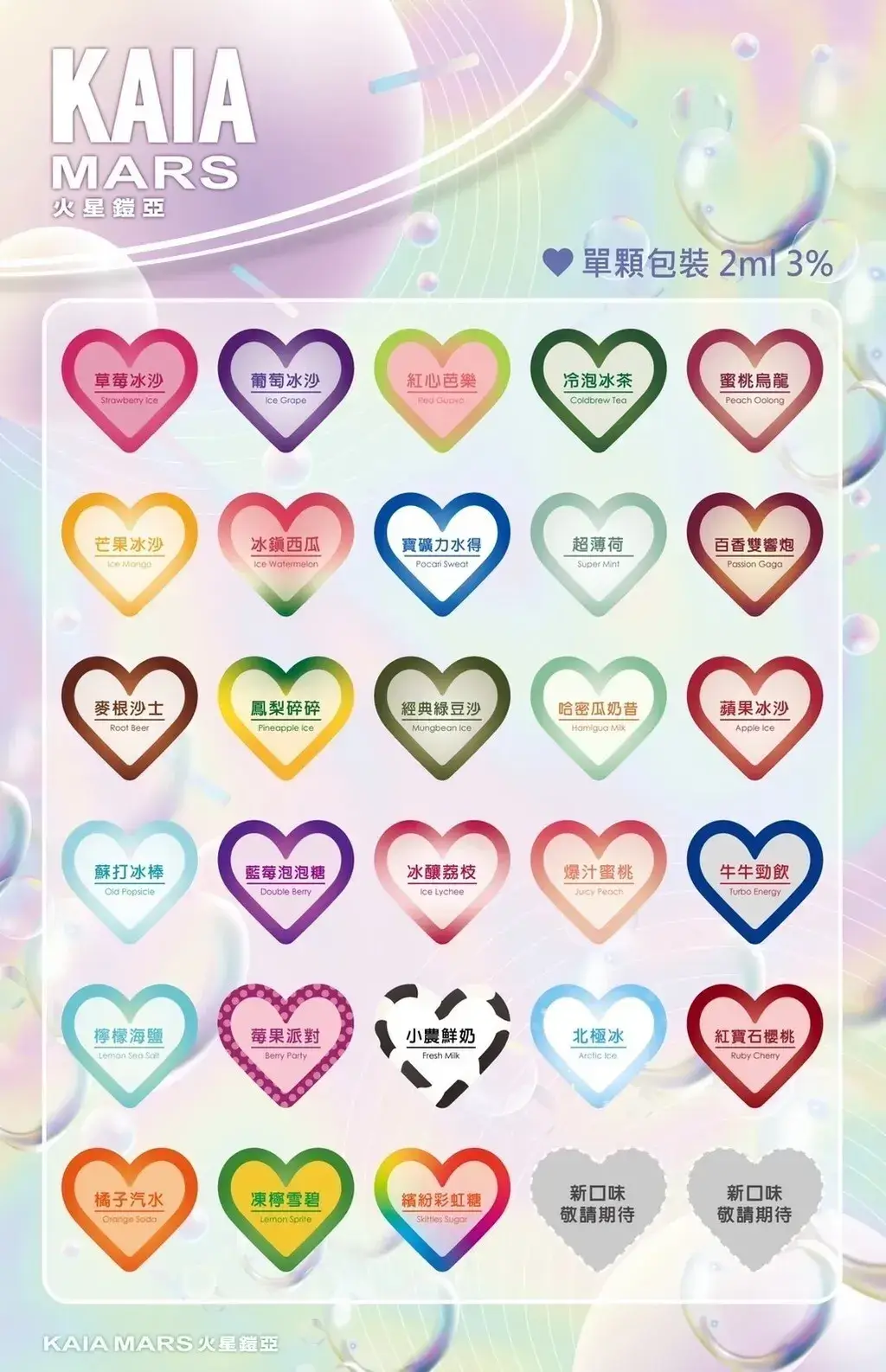 • 藍莓:酸甜的藍莓口感,獨特的果香與清爽的味道讓每次吸入都充滿驚喜。