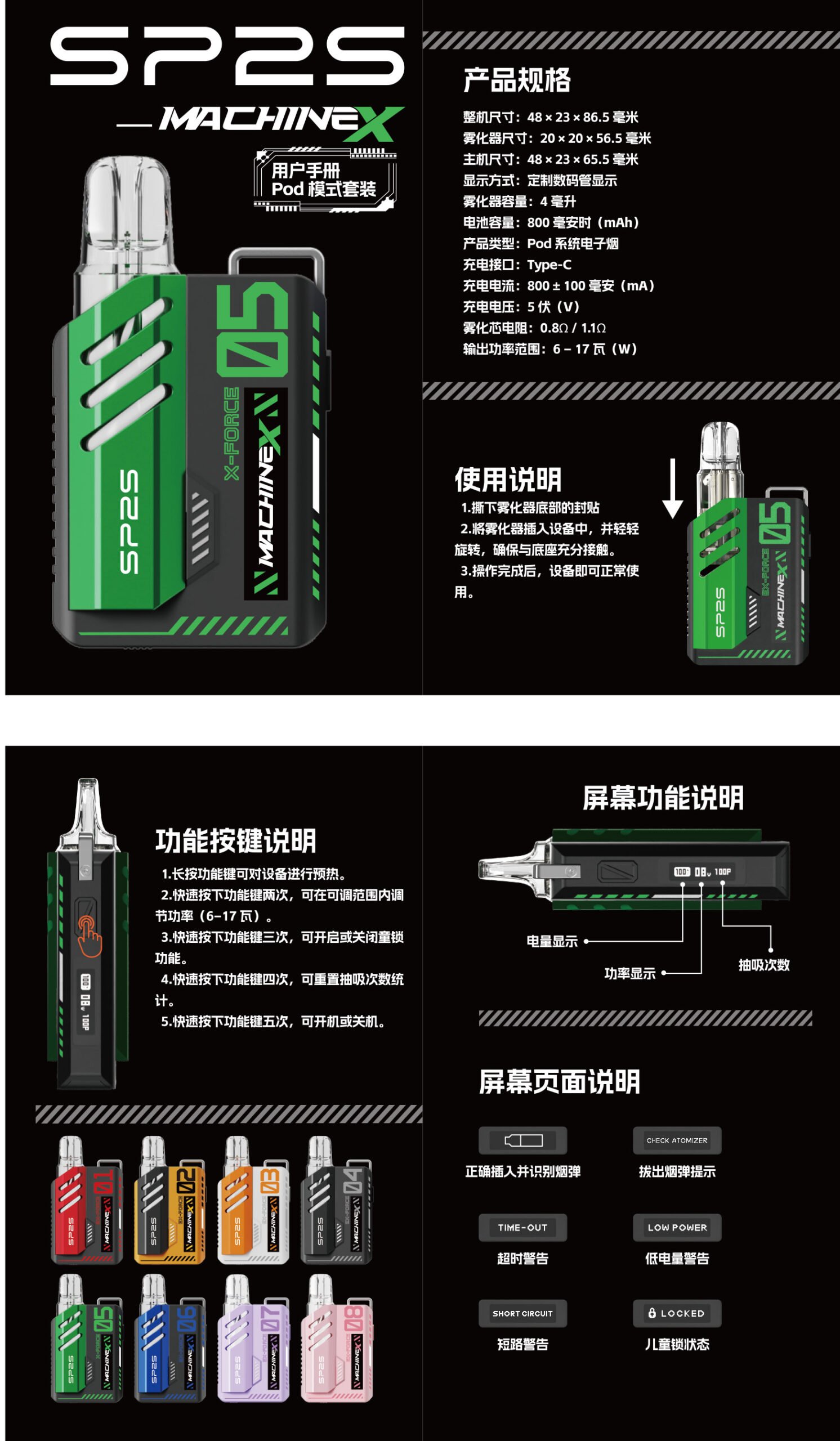 OLED熒幕:電量百分比+功率瓦數+抽吸口數